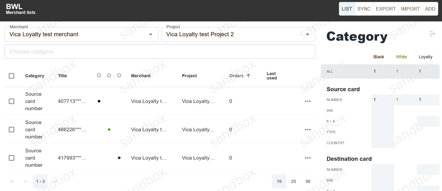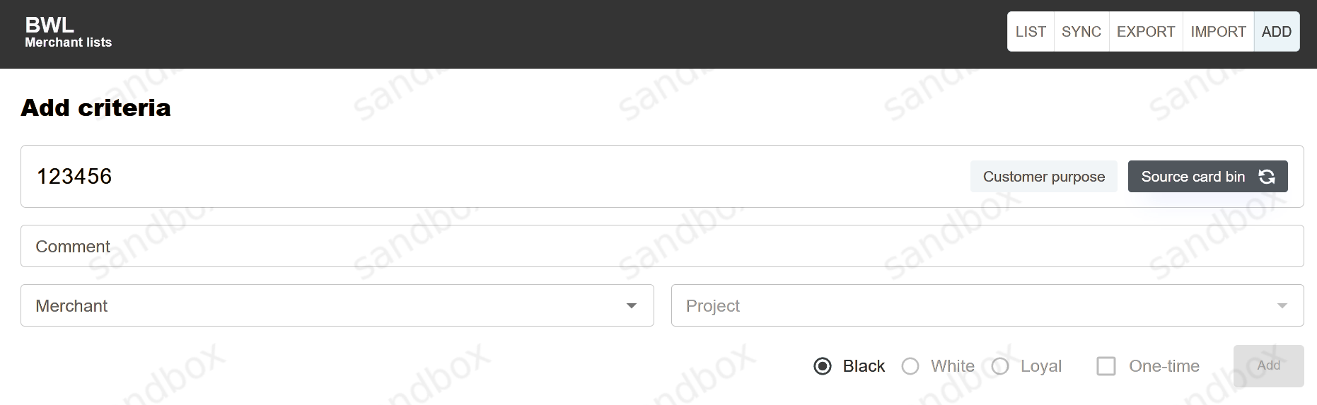 Select Merchant or Manager to switch between adding BWL list to Merchant or Manager.